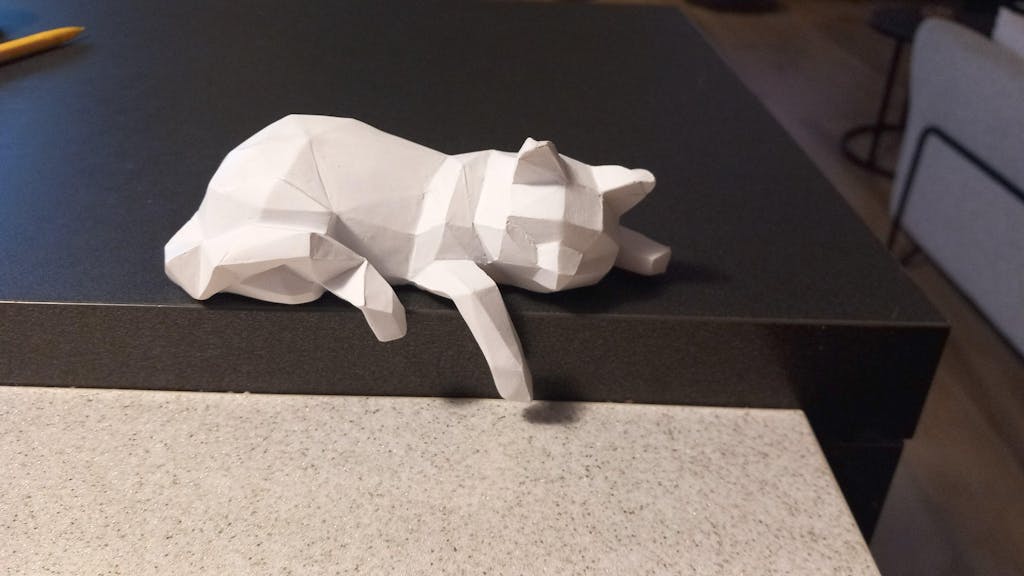 Statue chat couché origami blanc 15 cm
